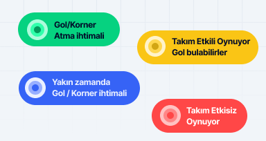• Canlı Maç İndikatörleri 'Bu takım gol bulabilir' veya 'Korner olabilir' gibi canlı tepkilerle, anlık fırsatlarını değerlendirin.