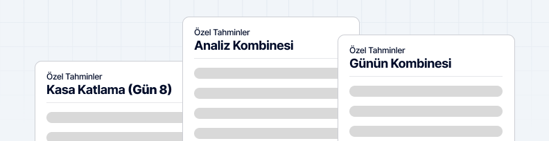 • Özel İstatistikler Yapay zeka destekli bu bölüm, kapsamlı maç analizlerine dayanarak hazırlanan tam bet kuponlarını sunar. Kasa katlama ve kombineler gibi kuponlar sunan Özel İstatistikler ile kazanma şansınızı artırın ve stratejinizi bir üst seviyeye taşıyın.